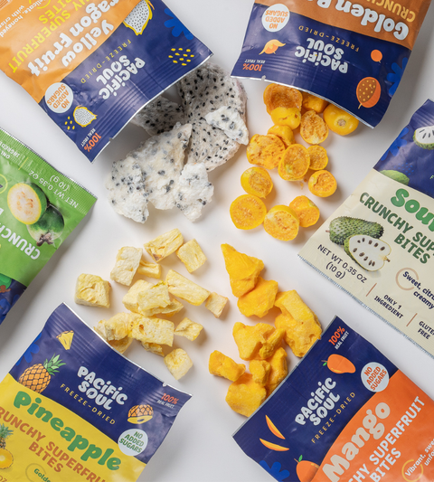 Got Questions? We’ve Got Answers.Most dried fruits are baked, air-dried, or dehydrated — methods that use heat and strip away vitamins, antioxidants, and natural flavor. At Pacific Soul, we use freeze-drying, a gentle process that locks in over 95% of the fruit’s original nutrients, color, and taste. And unlike typical dried fruit brands, we go beyond the usual apples, bananas, and raisins — bringing you rare Colombian superfruits like feijoa, golden berries, soursop, and yellow dragon fruit. No sugar. No additives. Just pure, powerful fruit you won’t find anywhere else.